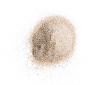 Кварц молотый пылевидный получают путем тщательного измельчения кварцевого песка. Зерна имеют выраженную угловатую форму и преимущественно белый оттенок.